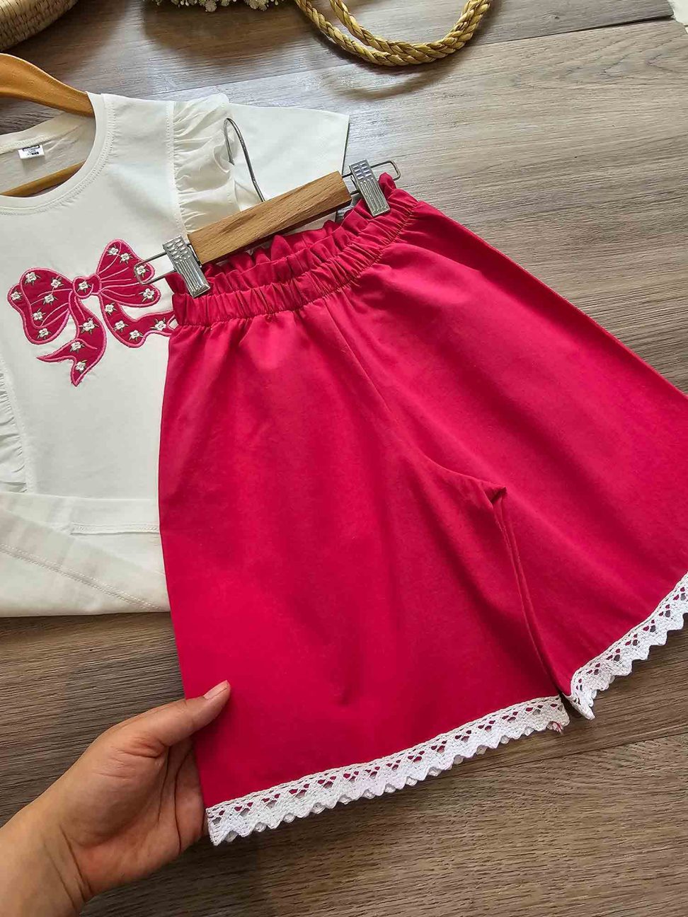 تیشرت شلوارک پاپیون تکه دوزی